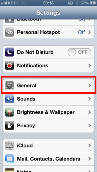 From the iOS main screen, start the "Settings"