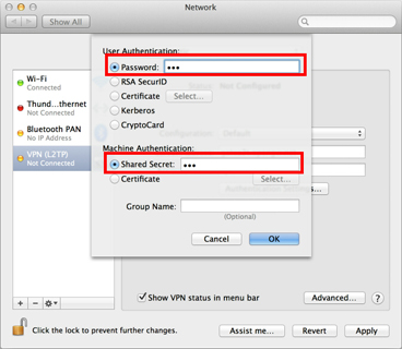 Connecting parameters for L2TP/IPsec VPN